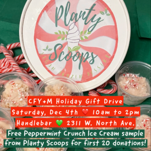 We are accepting donations in front of Handlebar on Saturday, December 4th between 10am and 2pm.