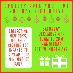 We are also accepting vegan groceries and other cruelty free household items for Food Not Bombs – Humboldt Park.