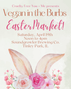 Join us for our annual Vegan in the Burbs Easter Market! This year we are celebrating together at Soundgrowler Brewing Co. in Tinley Park. We will be there extended hours – noon to 4pm. Grab yummy vegan food to feed you and your loved ones on Easter. We will also have a vegan, cruelty free scavenger hunt and easter egg hunt for kiddos!
